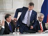 Государственный советник Республики Татарстан Минтимер Шаймиев (слева) и генеральный директор ГК "Российская корпорация нанотехнологий" ("Роснано") Анатолий Чубайс (справа) на совместном заседании Госсовета России и комиссии по модернизации и технологическому развитию экономики, посвященном развитию профессионального образования в России. Заседание прошло в Кремле.