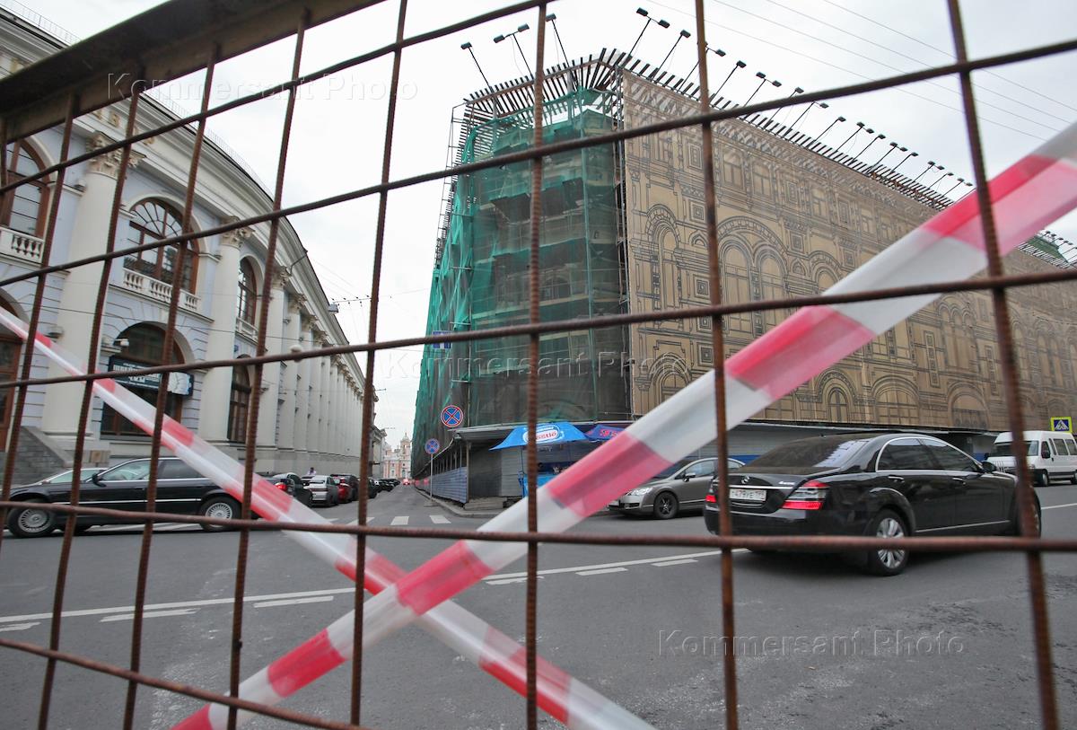 Вид из Главного универсального магазина (ГУМ) на реконструируемый особняк по адресу: Красная площадь дом 5.