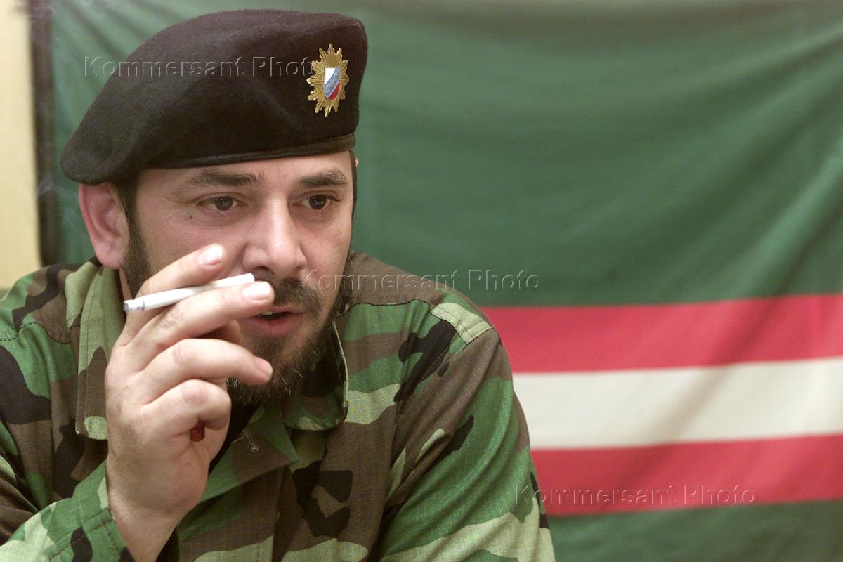 Командир чеченского ОМОНа Муса Газимагомедов во время интервью о итогах спецоперация ОМОНа по зачистке боевиков в городе Грозном. Операция проводилась в связи с днем гибели первого президента Чечни Джохара Дудаева, который боевики традиционно отмечают терактами.
