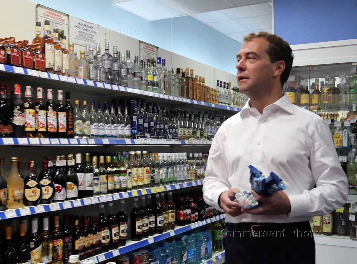 Рабочая поездка президента России Дмитрия Медведева в Приволжский федеральный округ. Президент России Дмитрий Медведев во время посещения одного из продуктовых магазинов Оренбурга.