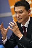Президент Калмыкии Кирсан Илюмжинов на пресс-конференции на тему: "Предстоящая смена власти в Калмыкии: причины отставки президента. Дальнейшие планы Илюмжинова". Пресс-конференция прошла в издательском доме "Комсомольская правда".