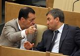 Член комитета Государственной думы России по бюджету и налогам Владимир Пехтин (слева) во время заседания Госдумы.
