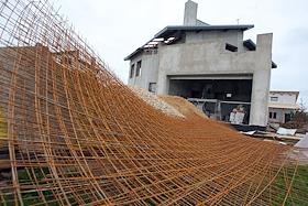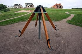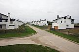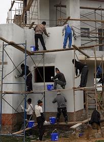 Коттеджный поселок "Высокий берег". Рабочие гастарбайтеры во время строительных работ.