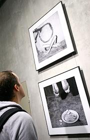 Посетитель на церемонии открытия выставки фотографа из ЮАР Роджера Баллена "Роджер Баллен: Документальный вымысел", в галерее "Photographer.ru" в Центре современного искусства "Винзавод".