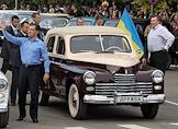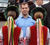 Президент России Дмитрий Медведев во время визита в город Глухов в составе автопробега Санкт-Петербург - Киев.