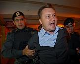 Гей-активист Николай Алексеев (в центре) во время задержания после пикета гей-активистов против мэра Москвы Юрия Лужкова у мэрии Москвы.