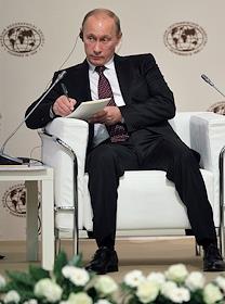 Председатель правительства России Владимир Путин во время работы Международного Арктического форума "Арктика - территория диалога". Форум прошел в Московском государственном университете (МГУ) имени М.В.Ломоносова.