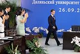 Официальный визит президента России Дмитрия Медведева в Китай. Президент России Дмитрий Медведев во время посещения Даляньского института иностранных языков.