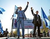 Лидер движения "Демократический выбор" Владимир Милов (слева) и лидер Республиканской партии Владимир Рыжков (справа) во время проведения Акции с требованием избрания нового мэра Москвы. Акция, организованная комитетом "Москвичи за честные выборы", прошла на Болотной площади.