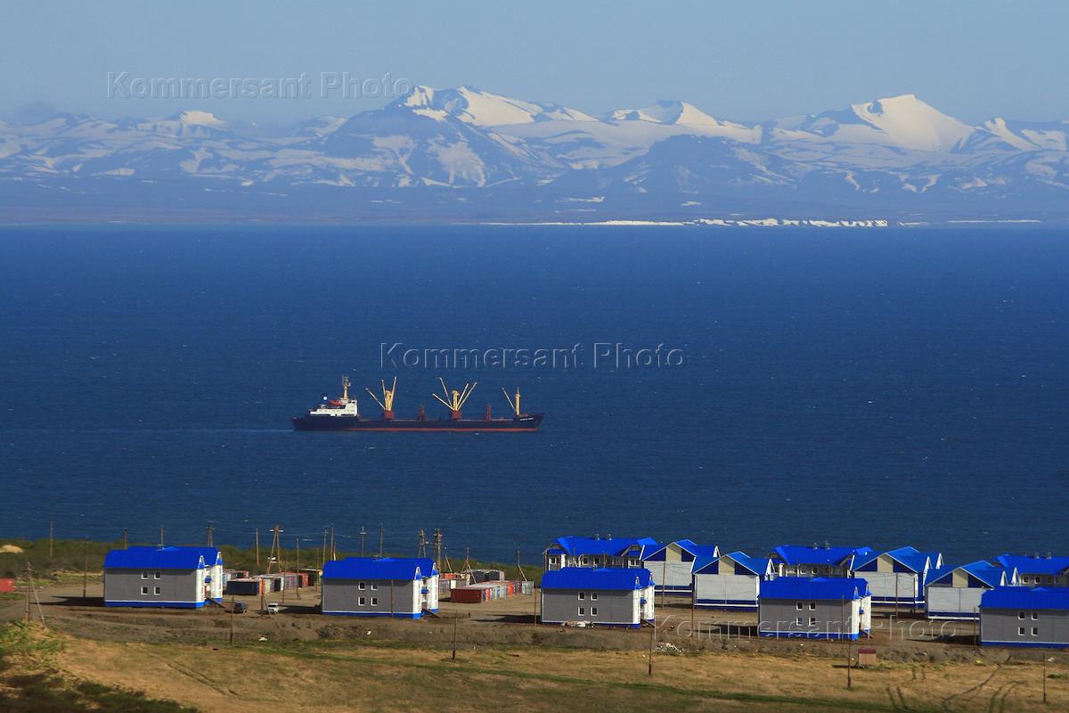 Новый жилой район села Тиличики на морской террасенад заливом Корфа Берингова моря.