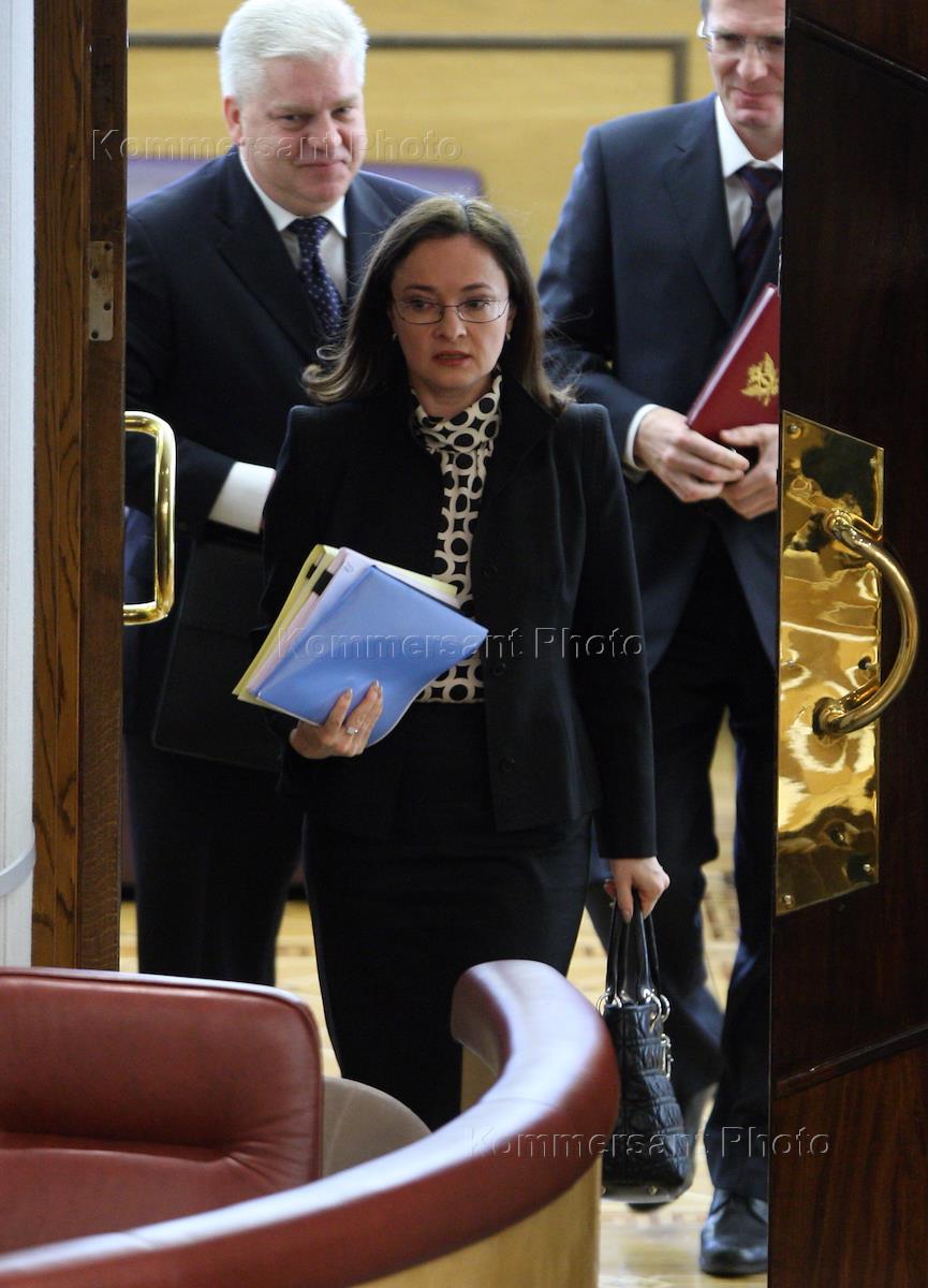 Министр экономического развития России Эльвира Набиуллина (в центре) во время заседания Государственной думы России.