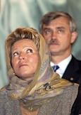 Заместитель председателя правительства по социальным вопросам Валентина Матвиенко (слева) и представитель президента России в Центральном федеральном округе Георгий Полтавченко (справа) во время праздничного богослужения в пасхальную ночь в храме Христа Спасителя, которое возглавил патриарх Московский и всея Руси Алексий II.