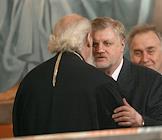 Председатель Совета Федерации Сергей Миронов (справа) во время праздничного богослужения в пасхальную ночь в храме Христа Спасителя, которое возглавил патриарх Московский и всея Руси Алексий II.