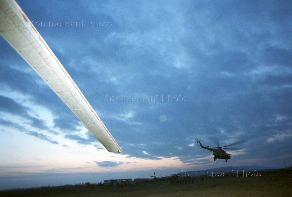 Вертолет перед боевым вылетом на военном аэродроме федеральной авиации.