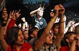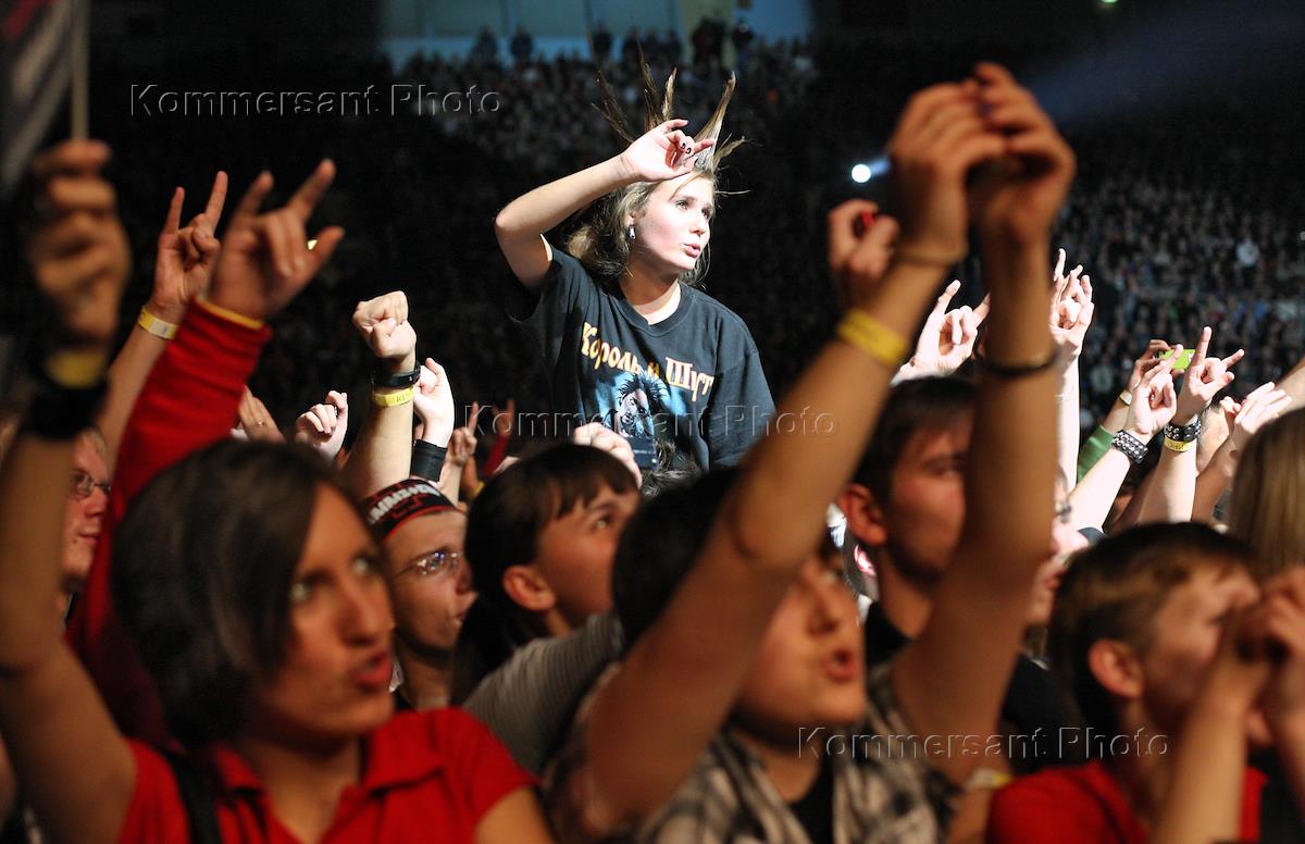 Зрители на концерте "20 лет без "Кино", посвященном памяти Виктора Цоя. Концерт прошел в спорткомплексе "Олимпийский".