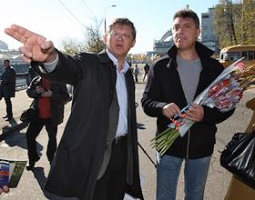 Cопредседатель оппозиционного движения "Солидарность" Борис Немцов (слева) на митинге коалиции четырех оппозиционных организаций "За Россию без произвола и коррупции". Митинг прошел на Болотной площади.