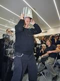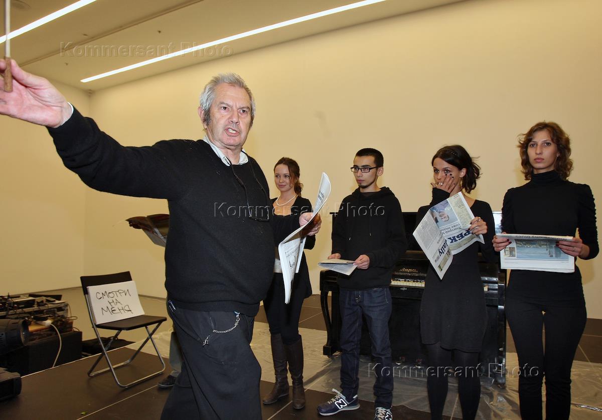 Открытие нового здания Дома фотографии, Мультимедийного комплекса актуальных искусств, Multimedia Art Museum Mosсow (МАММ). Французский художник Бен Вотье (слева) во время мультимедийной ретроспективы-перформанса, посвященной арт-движению "Флюксус".