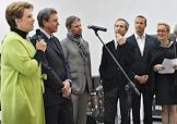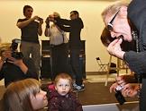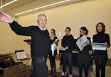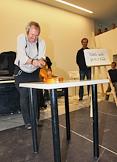 Открытие нового здания Дома фотографии, Мультимедийного комплекса актуальных искусств, Multimedia Art Museum Mosсow (МАММ). Французский художник Бен Вотье (второй справа) во время мультимедийной ретроспективы-перформанса, посвященной арт-движению "Флюксус".