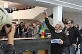 Открытие нового здания Дома фотографии, Мультимедийного комплекса актуальных искусств, Multimedia Art Museum Mosсow (МАММ). Директор Московского дома фотографии Ольга Свиблова (справа) во время мультимедийной ретроспективы-перформанса французского художника Бена Вотье, посвященной арт-движению "Флюксус".