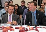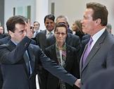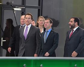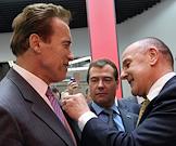 Губернатор штата Калифорния Арнольд Шварценеггер на встрече с президентом России в школе управления "Сколково".