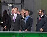 Губернатор штата Калифорния Арнольд Шварценеггер (второй слева), президент России Дмитрий Медведев (второй справа) и председатель совета директоров Группы компаний "Тройка-Диалог" Рубен Варданян (справа) во время встречи в школе управления "Сколково".