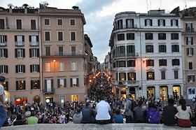 Виды Рима. Отдыхающие на ступенях Испанской лестницы.