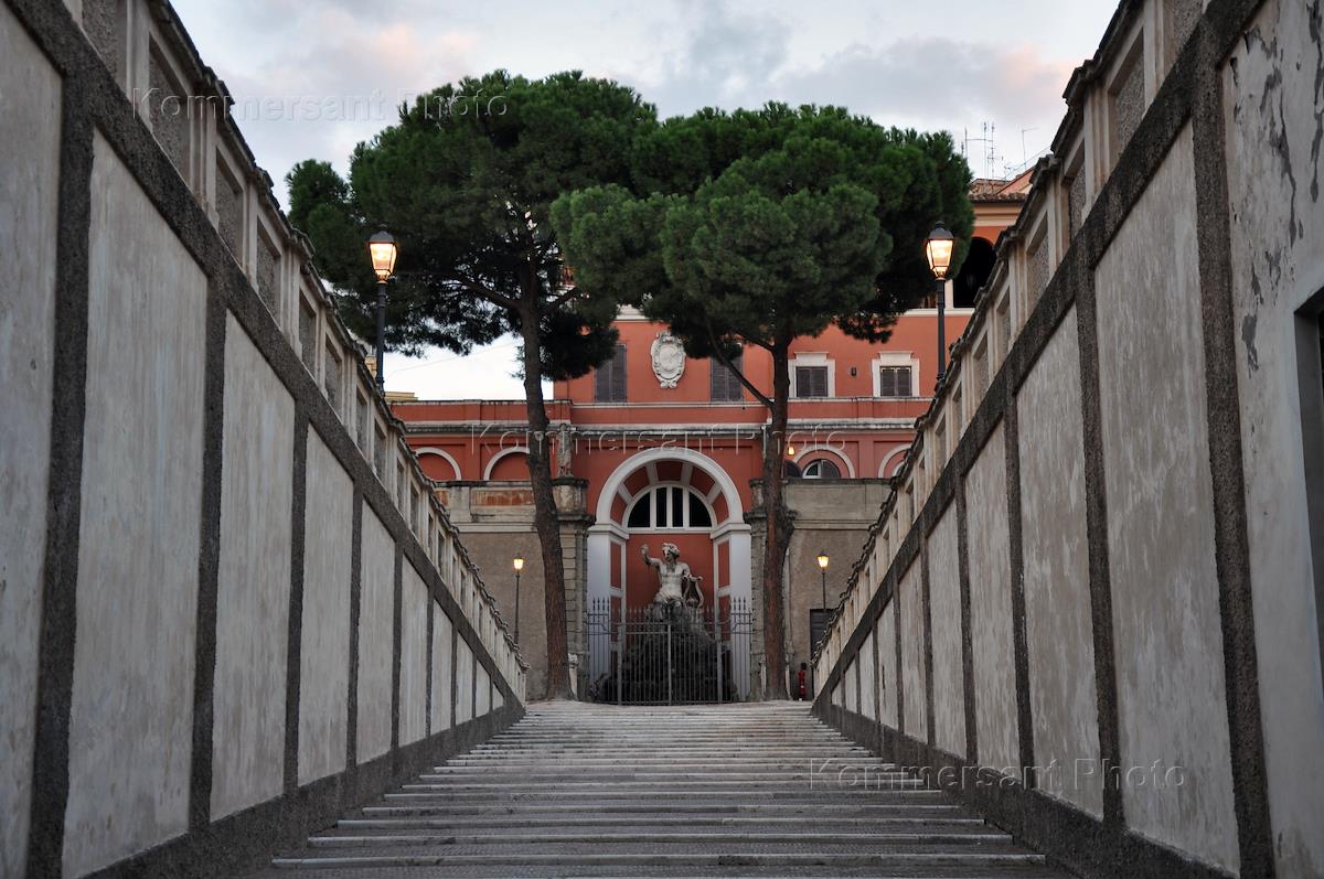 Виды Рима. Капитолийский холм. Статуи Диоскуров и здание мэрии Рима.