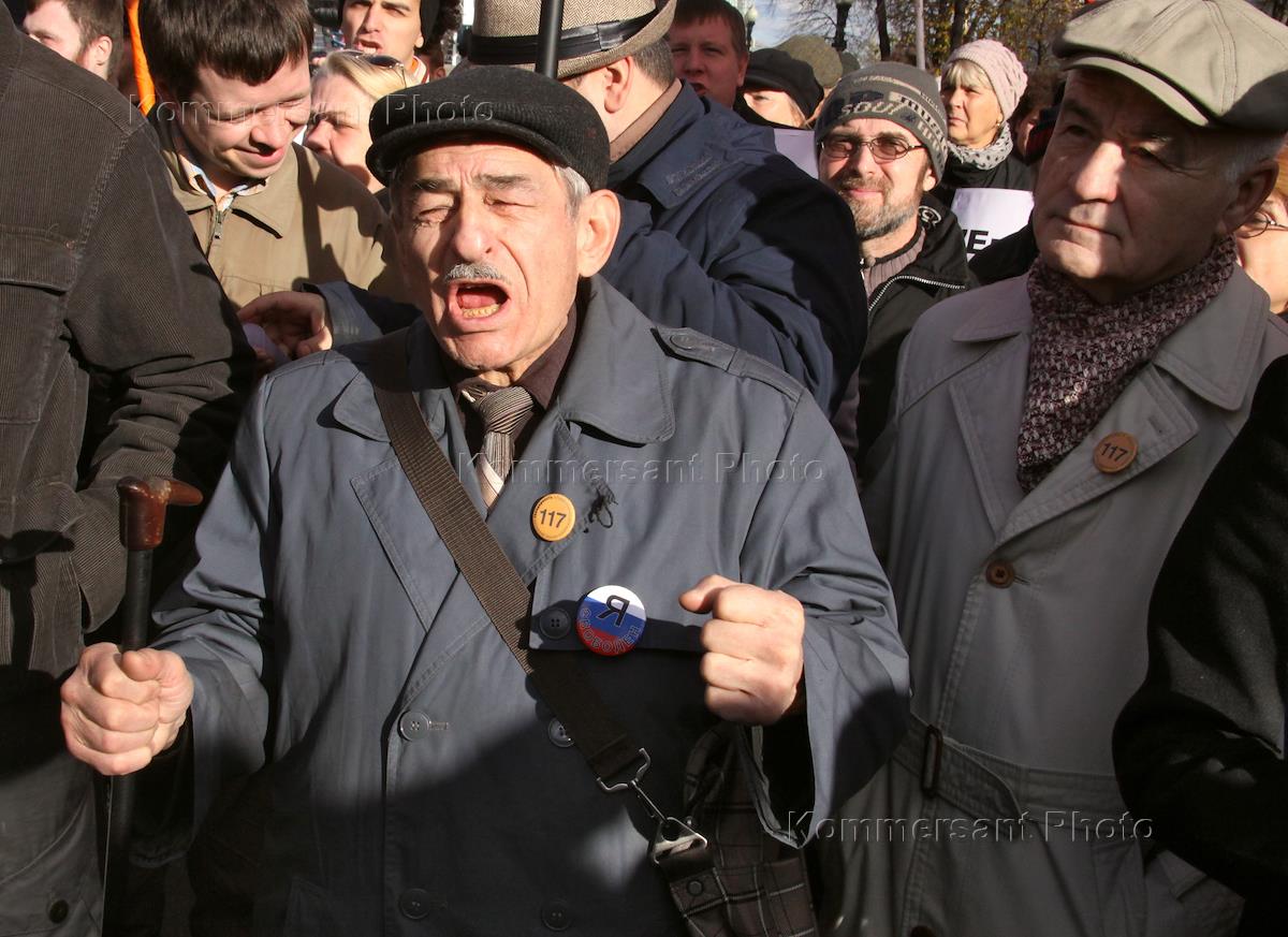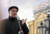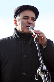 лидер движения "Объединенный гражданский фронт" Гарри Каспаров на митинге оппозиции с требованиями отставки правительства, роспуска обеих палат парламента, проведения досрочных свободных выборов, радикального обновления личного состава милиции и спецслужб. Митинг прошел на Пушкинской площади.