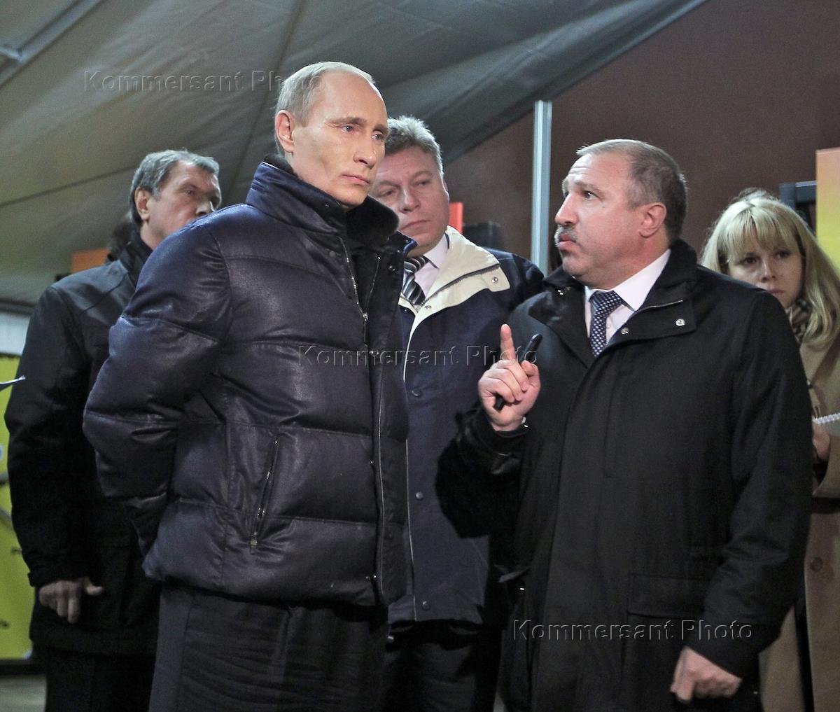 Председатель правительства России Владимир Путин (в центре) и президент НК "Роснефть" Эдуард Худайнатов (справа) перед началом совещания по вопросу "О проекте генеральной схемы развития нефтяной отрасли на период до 2020 года". Совещание прошло в ОАО "Новокуйбышевский нефтеперерабатывающий завод".