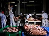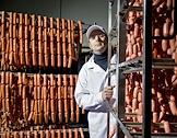 Цех по производству сарделек на мясокомбинате "Окраина".