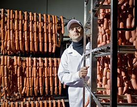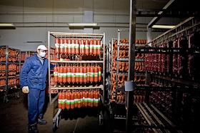 Управляющий директор мясокомбината "Окраина" Виталий Деледивка в колбасном цехе.