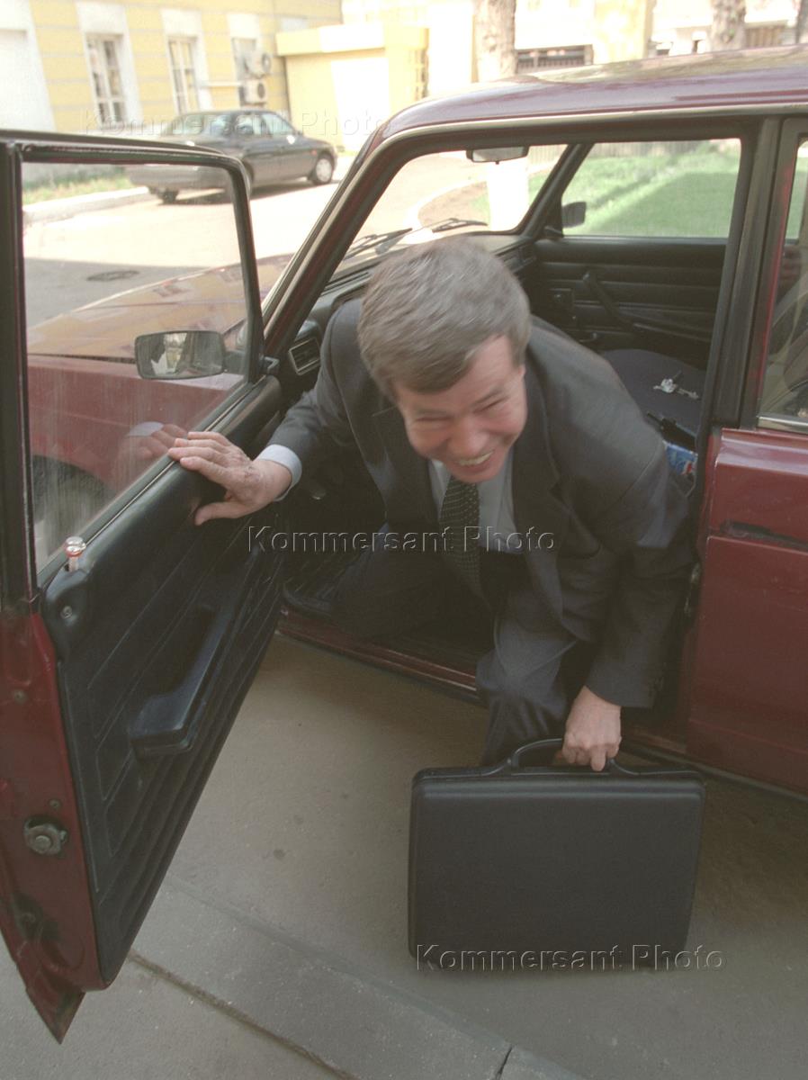 Председатель движения "Трудовая Россия" Виктор Анпилов после пресс-конференции о планах на День международной солидарности трудящихся движения "Трудовая Россия" и Авангарда Красной молодежи и Союза коммунистической молодежи. Пресс-конференция состоялась в пресс-центре "АиФ-Новости".