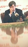 Председатель движения "Трудовая Россия" Виктор Анпилов во время пресс-конференции о планах на День международной солидарности трудящихся движения "Трудовая Россия" и Авангарда Красной молодежи и Союза коммунистической молодежи. Пресс-конференция состоялась в пресс-центре "АиФ-Новости".