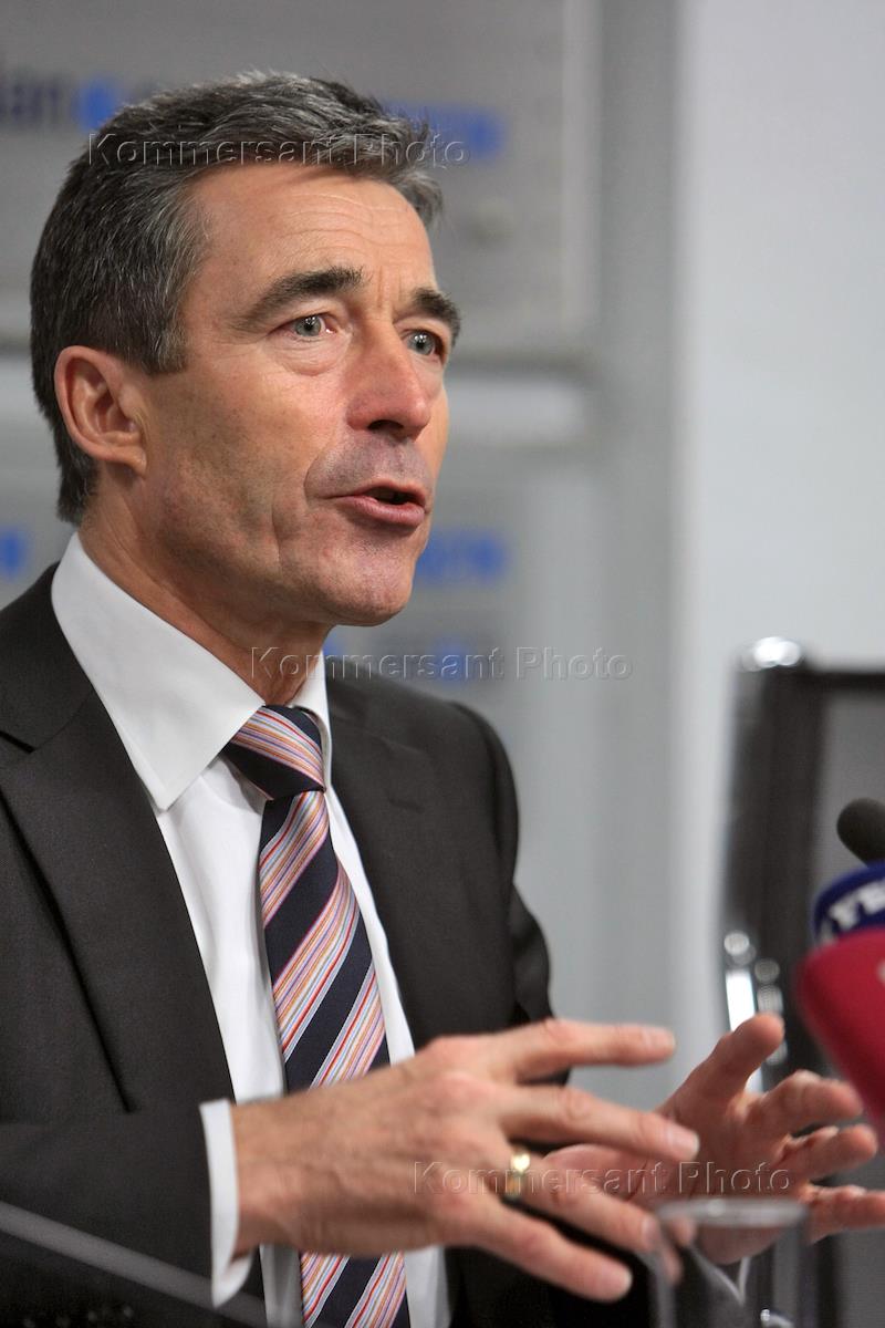 Генеральный секретарь НАТО Андерс Фог Расмуссен на пресс-конференции "Россия-НАТО: перспективы сотрудничества". Пресс-конференция прошла в РИА "Новости".