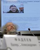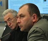 Ддиректор автономной некоммерческой организации "Институт прав человека" Валентин Гефтер (слева) и исполняющий обязанности главного редактора "Газета.ру" Михаил Котов (справа) во время "Круглого стола" на тему: "Нападение на журналиста Олега Кашина: реакция профессионального сообщества". "Круглый стол" прошел в РИА "Новости".