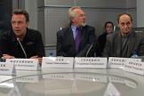 Слева направо: главный редактор газеты "КоммерсантЪ" Михаил Михайлин, главный редактор "Московского комсомольца" Павел Гусев и главный редактор "Время новостей" Владимир Гуревич во время "Круглого стола" на тему: "Нападение на журналиста Олега Кашина: реакция профессионального сообщества". "Круглый стол" прошел в РИА "Новости".