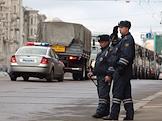 Сотрудники дорожно-патрульной службы (ДПС) во время дежурства на Тверской улице.