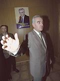 Один из кандидатов в президенты Республики Ингушетия Хамзат Гуцериев в своем штабе во время предвыборной компании. Прокуратура республики возбудила против Х.Гуцериева уголовное дело по факту подкупа избирателей. Одновременно в штабе кандидата был произведен обыск и изъяты компьютеры.