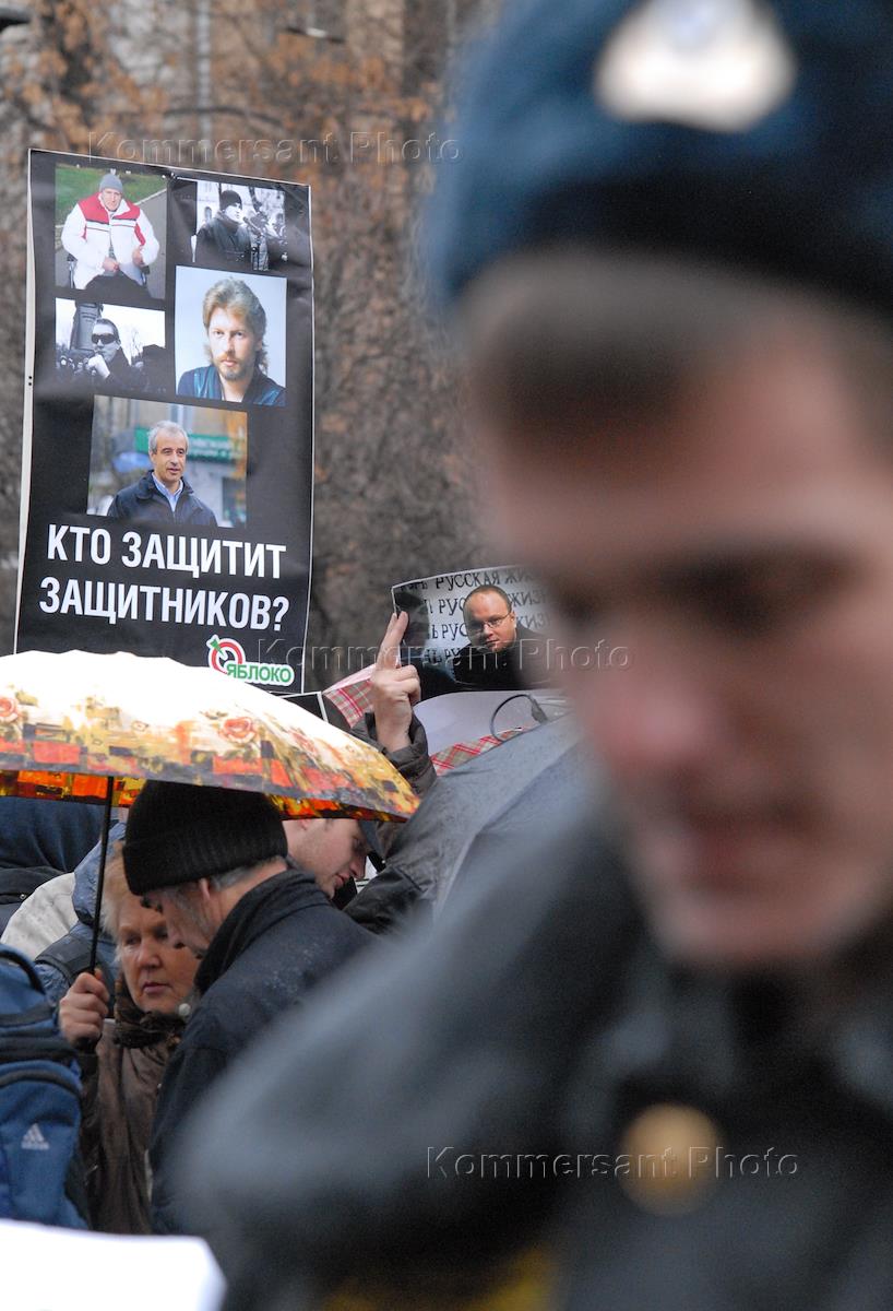 Корреспондент журнала "Русский репортер" Илья Азар во время митинга против политического террора, приуроченный к годовщине нападения на главного редактора газеты "Химкинская правда" Михаила Бекетова. Митинг прошел на Чистых прудах у памятника Александру Грибоедову.