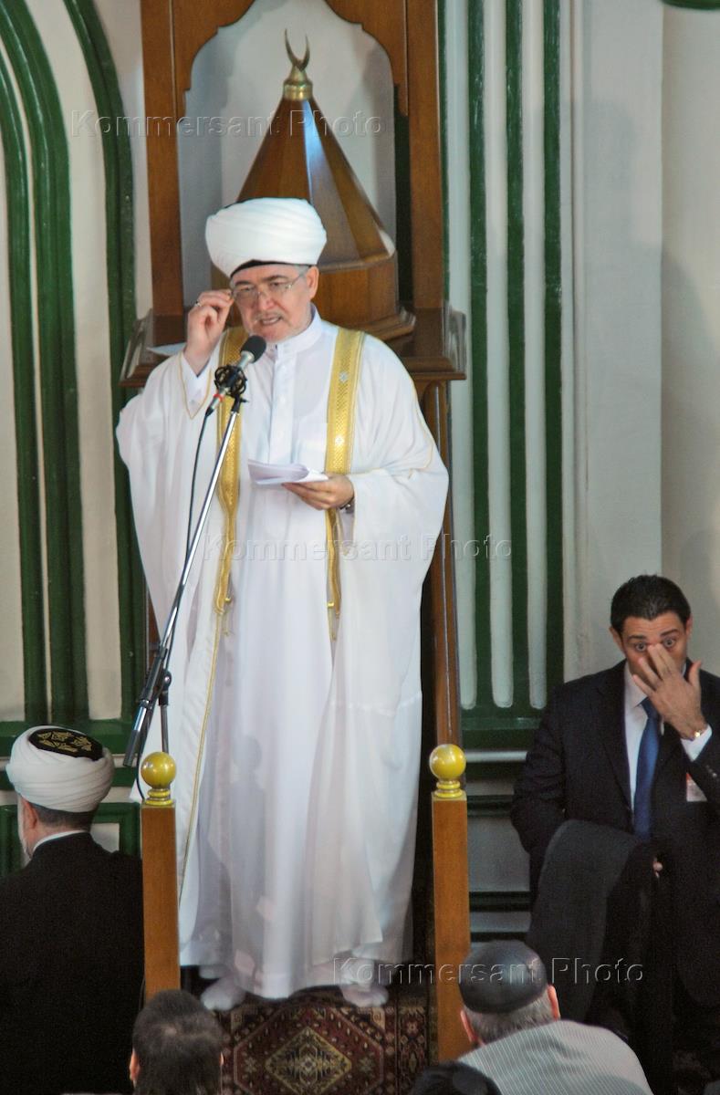 Муфтий шейх, председатель Духовного управления мусульман европейской части России Равиль Гайнутдин во время празднования мусульманского праздника "Курбан-байрам" в Соборной мечети.
