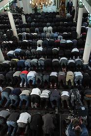 Празднование мусульманского праздника "Курбан-байрам" в Соборной мечети. Верующие во время молитвы.