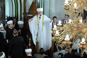 Муфтий шейх, председатель Духовного управления мусульман европейской части России Равиль Гайнутдин во время празднования мусульманского праздника "Курбан-байрам" в Соборной мечети.