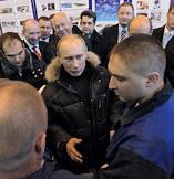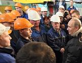 Рабочая поездка председателя правительства России Владимира Путина в Уральский федеральный округ. Председатель правительства России Владимир Путин (в центре) во время посещения ОАО "Корпорация ВСМПО-АВИСМА".