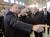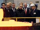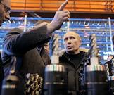 Рабочая поездка председателя правительства России Владимира Путина в Уральский федеральный округ. Генеральный директор ОАО "Корпорация ВСМПО-АВИСМА" Михаил Воеводин (слева) и председатель правительства России Владимир Путин (второй справа) во время посещения ОАО "Корпорация ВСМПО-АВИСМА".