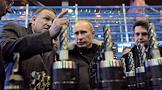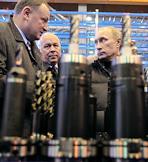Рабочая поездка председателя правительства России Владимира Путина в Уральский федеральный округ. Слева направо: директор ГК "Ростехнологии" Сергей Чемезов, председатель правительства России Владимир Путин и губернатор Свердловской области Александр Мишарин во время посещения ОАО "Корпорация ВСМПО-АВИСМА".