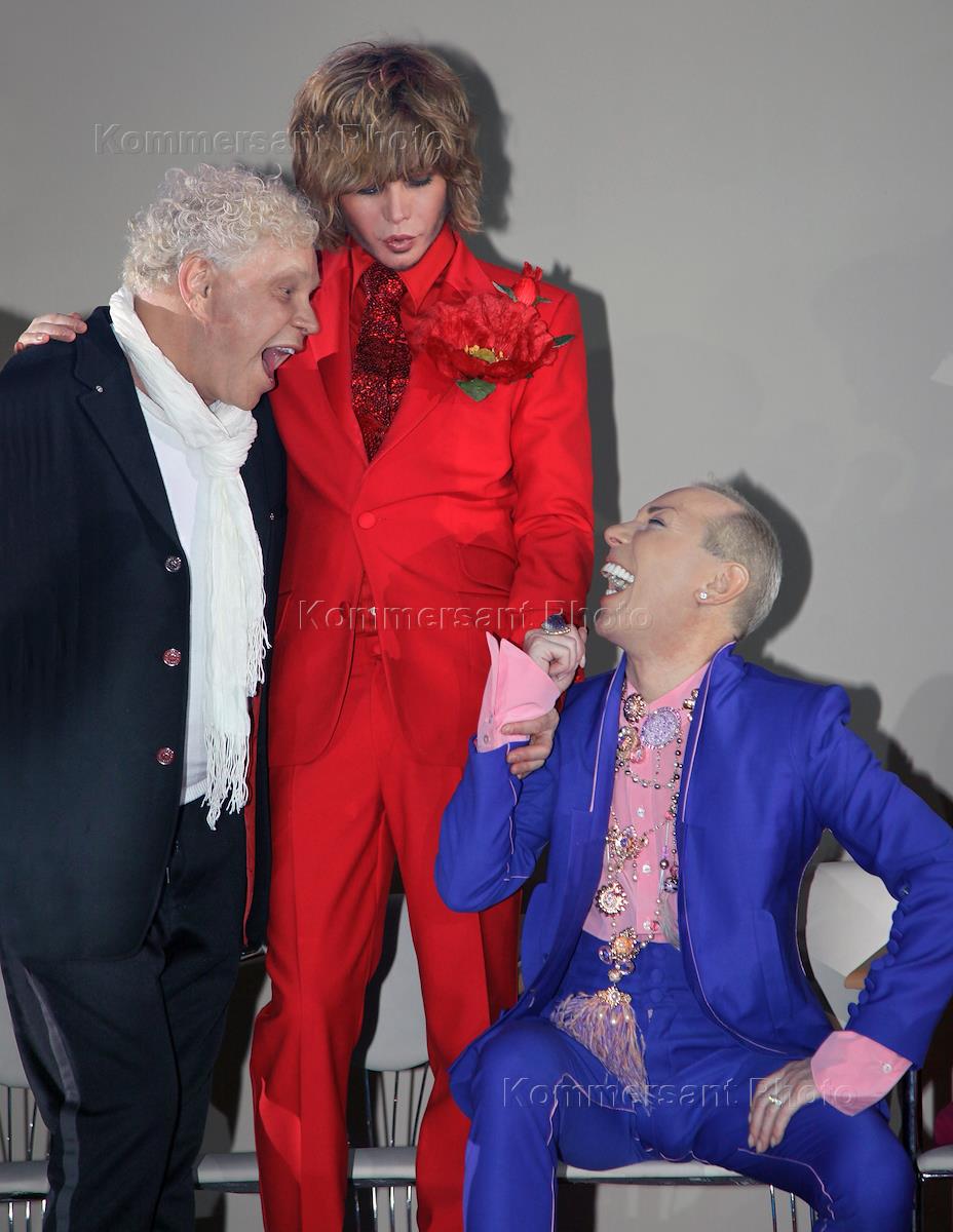 Слева направо: артист Борис Моисеев, стилист Сергей Зверев и артист Александр Песков на презентыции книги Лены Лениной "Альфонсы или любовные мошенники".