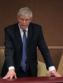 Председатель комитета Государственной думы России по международным делам Константин Косачев (справа) во время думского заседания.