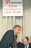 VI Съезд Аграрнопромышленного Союза России проходил в здании Министерства сельского хозяйства. Лидер КПРФ Геннадий Зюганов (слева) и председатель Аграрной партии России Михаил Лапшин (справа).