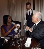 Модель Наоми Кэмпбелл (слева) и американский дизайнер Деннис Бассо (справа) на ужине в честь открытия корнера Dennis Basso в ресторане "Большой".
