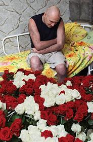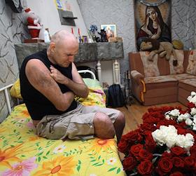 Бывший главный редактор газеты "Химкинская правда" Михаил Бекетов у себя дома во время вручения ему цветов, организованного Фондом помощи журналисту.